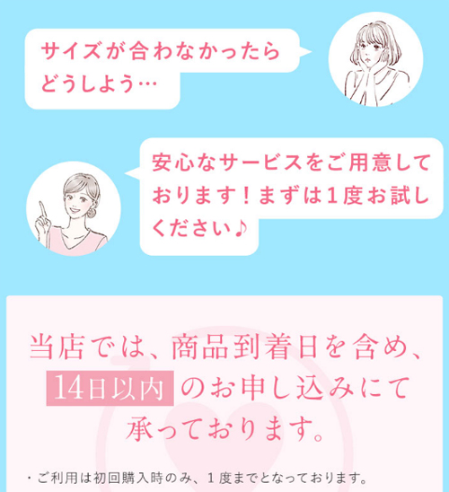 サイズ交換サービスもあるので、初めての方も安心して試すことができます。