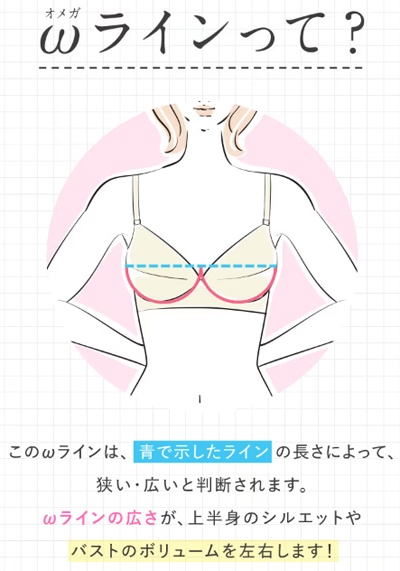 バストのボリュームやシルエットを左右する鍵は「ω(オメガ)ライン」にあります。